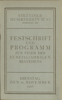 | Festschrift und Programm zur Feier des Fünfzigjahrigen Bestehens am Dienstag , den 21 (einundzwanzigsten) November 1916. | 2012-10-04 |