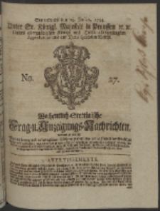 Tytuł: Wochentlich-Stettinische Frag- und Anzeigungs-Nachrichten. 1754 No. 27 + Anhang