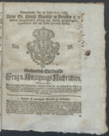 Tytuł: Wochentlich-Stettinische Frag- und Anzeigungs-Nachrichten. 1769 No. 38 + Anhang