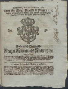 | Wochentlich-Stettinische Frag- und Anzeigungs-Nachrichten. 1769 No. 52 + Anhang | 2019-01-21 |