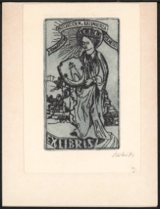 Akwaforta, 11,4x6,4 cm. Kompozycja zamknięta, na ekslibrisie postać kobieca trzymająca herb miasta, nad nią napis "Towarzystwa Przyjaciół m. Kazimierza Dolnego", po lewej widok na Górę Trzech Krzyży, w tle ekslibrisu widok miasta Kazimierz Dolny, u dołu napis "Ex Libris", kolorystyka czarno-biała. Kolekcja Ludwika Piosickiego.