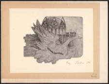 Akwaforta, 9,7x7,7 cm. Kompozycja zamknięta, na ekslibrisie dwa białe łabędzie, pierwszy leży, drugi ukrył szyję z dziobem, nad nimi przedstawienie graficzne w formie wnętrza kościoła w stylu gotyckim, po prawej napis "Ex libris", na łabędziu napis "Michała Jacoszka", kolorystyka czarno-biała. Kolekcja Ludwika Piosickiego.