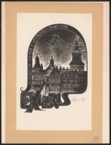 Linoryt, 10,7x8,3 cm. Kompozycja otwarta, na ekslibrisie widok Zamku Książ w Wałbrzychu, od dołu do góry półowalnie napis "De Architektura Romualda M. Łuczyńskiego- Zamek Książ", poniżej widoku napis "Ex libris", kolorystyka czarno-biała. Kolekcja Ludwika Piosickiego.