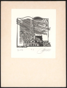 Linoryt, 6,5x7,4 cm. Kompozycja otwarta, na ekslibrisie widok ratusza na Rynku Wielkim na osiedlu Stare Miasto w Zamościu województwo lubelskie, u dołu kompozycji napis " Ex libris', po prawej napis "Muzeum Okręgowe w Zamościu", kolorystyka czarno-biała. Kolekcja Ludwika Piosickiego.