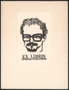 Cynkotypia, 8,3x5,7 cm. Kompozycja prostokątna, na ekslibrisie portret Jerzego Piosickiego w okularch, pod spodem napis " Ex libris Jerzego Piosickiego", kolorystyka czarno-biała. Kolekcja Ludwika Piosickiego.