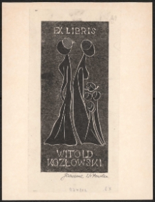 Linoryt, 13,2x5,9 cm. Kompozycja zamknięta,na ekslibrisie dwie fantazyjne postacie kobiet i cztery postacie dzieci, u góry kompozycji napis " Ex libris", u dołu napis " Witold Kozłowski", kolorystyka czarno-biała. Kolekcja Ludwika Piosickiego.