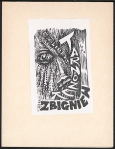Cynkotypia, 9,9x6,3 cm. Kompozycja prostokątna, na ekslibrisie twarz mężczyzny, od góry przez prawe oko do dołu napis "Ex libris", od tego napisu w prawo inny napis "Tarnożek", u dołu napis "Zbigniew", kolorystyka czarno-biała. Kolekcja Ludwika Piosickiego.