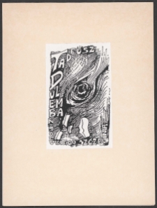 Offset, 8,5x5,2 cm. Kompozycja prostokątna, na ekslibrisie na piewrszym planie oko ludzkie, niżej głowa kobiety, od góry w lewo dół i w prawo napis " Tadeusz Dulemba z polskiego Szczecina", kolorystyka czarno-biała. Kolekcja Ludwika Piosickiego.