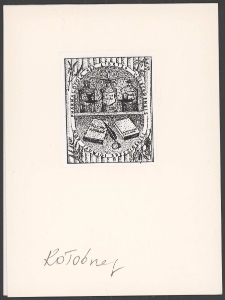 Cynkotypia,6,4x5,2 cm. Kompozycja prostokątna, na ekslibrisie w ramce w polu owalu na dole dwie książki, pomiędzy nimi gęsie pióro, na książce po lewej napis "Historia farmacji", na książce po prawej napis "Farmacja polska",wyżej na tle trzech naczyń aptecznych waga, po obwodzie owalu napisy: u góry "Ex libris", po lewej "Pharmacopola", po prawej "Colbergensis", u dołu 'Mgr Jadwigi Brzezińskiej", owal umieszczony w bordiurze z ornamentem roślinnym, kolorystyka czarno-biała. Kolekcja Ludwika Piosickiego.