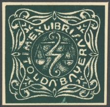 Cynotypia, 8,8x8,8 cm. Kompozycja kwadratowa, na ekslibrisie według fantazji artysty w polu kwadratu okrąg, w którego polu jest waga i graficzne przedstawienie paragrafu, po jego obwodzie napis " Ex libris Witolda Bayera", okrąg z napisem okala ornament roślinny, kolorystyka czarno-biało-zielona. Kolekcja Ludwika Piosickiego.