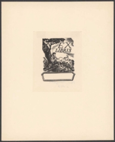 Drzeworyt, 6,5x5 cm. Kompozycja otwarta, na ekslibrisie według fantazji artysty pastuszek siedzący przy drzewie i grający na fujarce, u góry po prawej napis "Ex libris", niżej dwie kozy, u dołu kompozycji płycina bez napisu, kolorystyka czarno-biała.