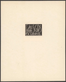 Linoryt, 3x4,3 cm. Kompozycja prostokątna, na ekslibrisie w polu prostokąta na czarnym tle żaglowiec, po prawej napis "SGPiS", u dołu kompozycji napis "Ex libris", kolorystyka czarno-biała.