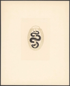 Linoryt, 6,1x4,1 cm. Kompozycja zamknięta, na ekslibrisie logo w kształcie owalu, na nim napis "Główna Biblioteka Lekarska", kolorystyka wielobarwna.