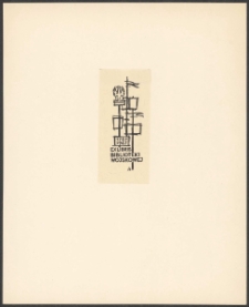 Cynkotypia, 6,5x2,2 cm. Kompozycja otwarta, na ekslibrisie dwie lance ułańskie i drzewiec z głowicą w kształcie orła Wojska Polskiego, na nich otwarte książki, w dolnej części drzewca na książce napis "1767-1967", pod książką napis "Exlibris Biblioteki Wojskowej , kolorystyka czarno-biała.