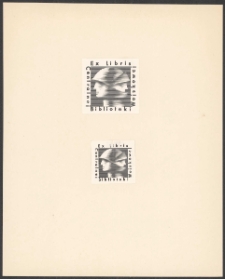 Cynkotypia, 4,3 x 4,3 cm. Kompozycja zamknięta, na ekslibrisie w polu kwadratu dwie złączone głowy, po lewej w wojskowym hełmie otwartym, po prawej w hełmie zamkniętym, wokół kwadratu napis "Ex libris Centralnej Biblioteki wojskowej", kolorystyka czarno-biała.