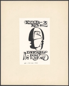 Cynkografia, 9,8x6,4 cm. Kompozycja zamknięta, na ekslibrisie u góry napis "Ex libris", po prawej oko i niżej element ozdobny , poniżej dwie maski teatralne złączone razem, niżej napis "Łódzkiego Domu Kultury", po lewej elementy ozdobne, u dołu stopka wydawnicza, kolorystyka czarno-biała.
