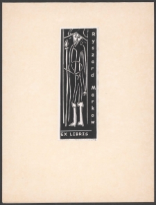 Drzeworyt, 9,5x3,2 cm. Kompozycja prostokątna, na ekslibrisie postać męska jako strażnik ze szpadą i halabardą, po prawej od góry do dołu napis : "Ryszard Markow", u dołu kompozycji napis " Ex libris", kolorystyka czarno-biała. Kolekcja Ludwika Piosickiego.