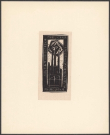 Cynkotypia,8,8x3,8 cm. Kompozycja prostokątna, na ekslibrisie według fantazji artysty fabryka i kominy fabryczne, nad nimi kwiat róży, od lewej do prawej w górę napis " Miejska Biblioteka Publiczna", od dołu w prawo w górę napis " im. Ludwika Waryńskiego w Łodzi", kolorystyka czarno-biała.