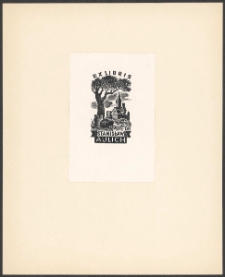 Drzeworyt, 5,5x3,2 cm. Kompozycja otwarta, na ekslibrisie według fantazji artysty drzewo, pod nim dwie wazy, jedna stojąca, druga przewrócona, z niej wysypały się monety, po lewej widok zamku, u góry napis "Ex libris", u dołu kompozycji na wstędze napis " Aulich", wyżej napis "Stanisław", po lewej skrót tytułu naukowego "Dr", kolorystyka czarno-biała.