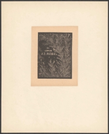 Drzeworyt, 7,2x5,4 cm. Kompozycja zamknięta, na ekslibrisie w ramce na czarnym tle gałęzie drzewa iglastego, na kompozycji napis "Ex libris J. Z. Robel", kolorystyka czarno-biała.