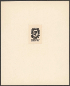 Drzeworyt, 3,3x2,3 cm. Kompozycja zamknięta, na ekslibrisie według wyobraźni artysty kartusz, w jego polu smok, pod kartuszem napis "MHW", kolorystyka czarno-biała.