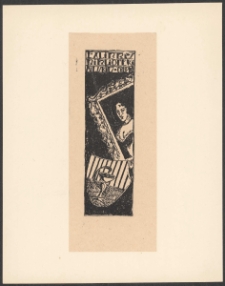 Cynkotypia, 12,3x3,7 cm. Kompozycja zamknięta, na ekslibrisie na czarnym tle herb miasta Cieplice, wyżej część obrazu z ramą, na płótnie postać kobiety, u góry kompozycji napis "Ex libris Biblioteki Miejskiej Cieplice", kolorystyka czarno-biała.