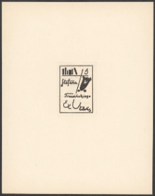 Cynkotypia, 5x3,5 cm. Kompozycja zamknięta, na ekslibrisie w ramce u góry książki stojące na regale, niżej po lewej napis "Stefana", po prawej graficzne przedstawienie sowy, jeszcze niżej napis "Trawińskiego", u dołu kompozycji napis "Ex libris", kolorystyka czarno-biała.