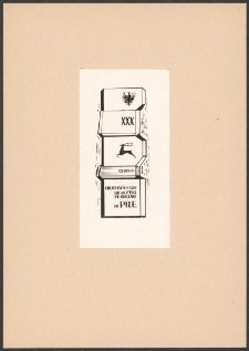 Cynkotypia,8x3,2 cm. Kompozycja zamknięta, na ekslibrisie według fantazji artysty konstrukcja przypominająca pomnik Rodła stojący na placu Konstytucji 3 Maja w Pile, u góry w polu pierwszego elementu herb województwa wielkopolskiego, drugiego trzy cyfry rzymskie "X" składające się na liczbę " XXX", w polu trzeciego jeleń z herbu miasta, czwartym elementem jest leżąca książka, w polu ostatniego elementu konstrukcji napis "Wojewódzkiej Biblioteki Publicznej w Pile", kolorystyka czarno-biała.