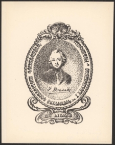 Cynkotypia, 15x10 cm. Kompozycja zamknięta, na ekslibrisie w polu kartusza portret mężczyzny, niżej napis "J. Krasicki", po obwodzie kartusza napis " Wojewódzka Biblioteka Publiczna w Przemyślu", w płycinie napis "Ex libris", kolorystyka czarno-biała.