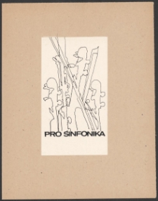 Cynkotypia, 10,5 x 6,5 cm. Kompozycja otwarta, na ekslibrisie gryfy instrumentów strunowych i instrumenty dęte, u dołu napis "Pro Sinfonika", kolorystyka czarno-biała.
