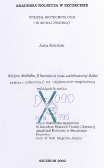 Akademia Rolnicza (Szczecin). ; Jacyno, Eugenia (1947- ). Promotor