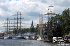 Żaglowce cumujące do nabrzeża przy Wałach Chrobrego w Szczecinie, podczas Dni Morza. ; Kolekcja fotografii zakupiona w ramach dotacji celowej przyznanej przez Gminę Miasto Szczecin na realizację zadania „Zakup zdjęć szczecińskiego fotografa Marka Czasnojcia - kolekcja cyfrowa MBP.”