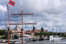 Widok na żaglowce cumujące w okolicy Wałów Chrobrego podczas Dni Morza w Szczecinie. ; Kolekcja fotografii zakupiona w ramach dotacji celowej przyznanej przez Gminę Miasto Szczecin na realizację zadania „Zakup zdjęć szczecińskiego fotografa Marka Czasnojcia - kolekcja cyfrowa MBP.”