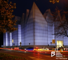 Filharmonia im. Mieczysława Karłowicza w Szczecinie jest usytuowana w miejscu dawnego Konzerthausu, uszkodzonego podczas II wojny światowej i rozebranego wkrótce potem. Budynek mieści w sobie salę symfoniczną dla 1000 i salę kameralną dla 200 widzów. Nowoczesny budynek jest laureatem wielu nagród architektonicznych. ; Kolekcja fotografii zakupiona w ramach dotacji celowej przyznanej przez Gminę Miasto Szczecin na realizację zadania „Zakup zdjęć szczecińskiego fotografa Marka Czasnojcia - kolekcja cyfrowa MBP.”