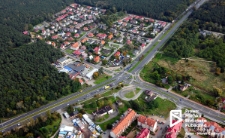 Osiedle domów jednorodzinnych w dzielnicy Kijewo, położone w pobliżu węzła drogowego Szczecin Kijewo i ulicy Zwierzynieckiej. ; Kolekcja fotografii zakupiona w ramach dotacji celowej przyznanej przez Gminę Miasto Szczecin na realizację zadania „Zakup zdjęć szczecińskiego fotografa Marka Czasnojcia - kolekcja cyfrowa MBP.”