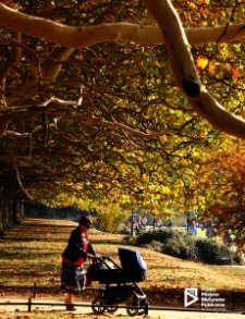 Ciągi Platanów po bokach Jasnych Bloni to obecnie największe w Polsce skupisko tego gatunku drzew, których rośnie tu 212. ; Kolekcja fotografii zakupiona w ramach dotacji celowej przyznanej przez Gminę Miasto Szczecin na realizację zadania „Zakup zdjęć szczecińskiego fotografa Marka Czasnojcia - kolekcja cyfrowa MBP.”
