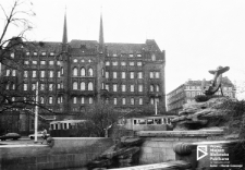 Czerwony Ratusz w Szczecinie, jak nazywany jest dawny ratusz miejski, powstał w drugiej połowie XIX wieku, na stoku odrzańskiego tarasu, wg. projektu Konrada Kruhla. Neogotycki gmach swoją formą nawiązywał do architektury średniowiecznych ratuszy, wznoszonych w nadbałtyckich miastach hanzeatyckich. Szczególną uwagę zwraca wejście do budynku, które ozdobiono między innymi reprezentacyjnymi balkonami i wieżyczkami. Ratusz przetrwał drugą wojnę światową w niemal nienaruszonym stanie, jednak w 1945 roku został podpalony przez niemieckie bojówki. Gmach odbudowano w latach 60. XX wieku. Obecnie jest siedzibą licznych instytucji, w tym Urzędu Morskiego w Szczecinie. ; Kolekcja fotografii zakupiona w ramach dotacji celowej przyznanej przez Gminę Miasto Szczecin na realizację zadania „Zakup zdjęć szczecińskiego fotografa Marka Czasnojcia - kolekcja cyfrowa MBP.”