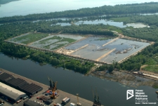 Ostrów Grabowski na szczecińskim Miedzyodrzu. Dawniej wyspa rzeczna, obiecnie jest połączona szeroką groblą z Łasztownią. ; Kolekcja fotografii zakupiona w ramach dotacji celowej przyznanej przez Gminę Miasto Szczecin na realizację zadania „Zakup zdjęć szczecińskiego fotografa Marka Czasnojcia - kolekcja cyfrowa MBP.”