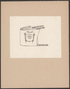 Cynkotypia kreskowa, 5,0x6,6 cm. Kompozycja otwarta, na ekslibrisie arkusze papieru, na pierwszym tarcza rycerska z herbem miasta Chełma, nad arkuszami napis "Ex Bibliotheca Regionis", w dolnej części kompozycji po prawej za arkuszami napis "Chełmensis", kolorystyka czarno-biała.