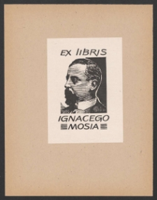 Cynkotypia kreskowa, 5,0x5,0 cm. Kompozycja otwarta, na ekslibrisie portret Henryka Sienkiewicza, nad kompozycją napis "Ex libris", pod kompozycją napis "Ignacego Mosia", kolorystyka czarno-biała.