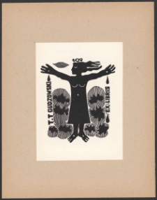 Linoryt, 9,0x8,0 cm. Kompozycja otwarta, na ekslibrisie postać kobiety z rozłożonymi rękami, po lewej i po prawej stronie kobiety elementy abstrakcyjne, od nich po lewej napis " T.T Gudzowski", po prawej napis " Ex libris", kolorystyka czarno-biała.