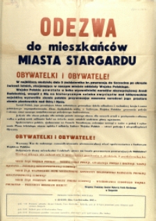Title: [Afisz] Odezwa do mieszkańców miasta Stargardu
