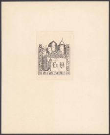 Cynkotypia, 7,3x5,8 cm. Kompozycja otwarta, na ekslibrisie według fantazji artysty kobieta w zbroi trzymająca otwartą książkę, po jej prawej wieża Zamku Joannitów w Świdwinie, po lewej ptak na liściach rośliny, na książce napis "Ex libris", po lewej napis z dołu do góry "Powiatowa i Miejska", po prawej z góry do dołu napis "Biblioteka im. J. Śpiewaka", u dołu kompozycji napis "w Świdwinie", kolorystyka czarno-biała.