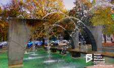 Nowoczesna podświetlana nocą fontanna, została wybudowana w ramach programu przebudowy basenów przeciwpożarowych w 2012 r. Fontanna jest wzorowana na fragmencie neogotyckiej fasady kościoła garnizonowego, a dokładniej jednego z łuków nad wejściem do świątyni. ; Kolekcja fotografii zakupiona w ramach dotacji celowej przyznanej przez Gminę Miasto Szczecin na realizację zadania „Zakup zdjęć szczecińskiego fotografa Marka Czasnojcia - kolekcja cyfrowa MBP.”